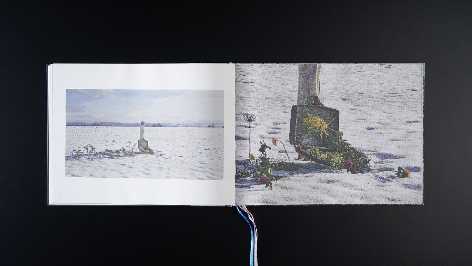But not only the scenes are beautiful, the execution of her work is also surprising. Her videos become music boxes that repeat themselves endlessly. And her photos are processed in light boxes or are directly woven into a tapestry.